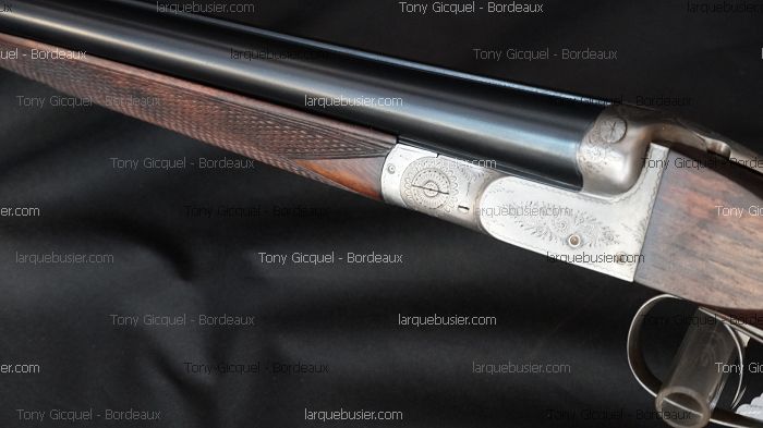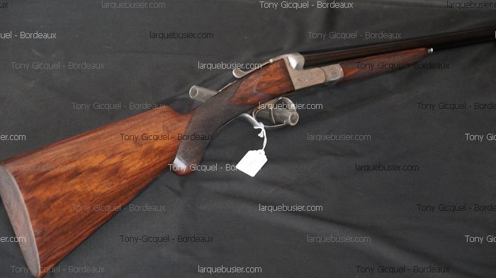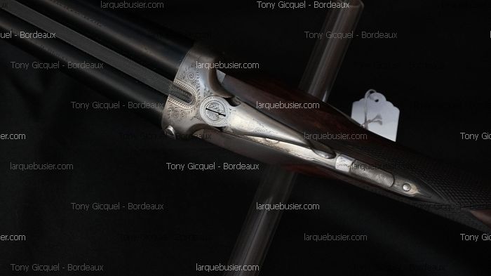 ARTISAN BELGE JUXTAPOSE CAL 24/65, éjecteurs, double détente, canons 69.5cm, bande pleine, chokes 1/2 et 3/4, crosse 1/2 pistolet L 365 mm tout bois. Poids 2.340 kg, grenadières.