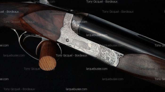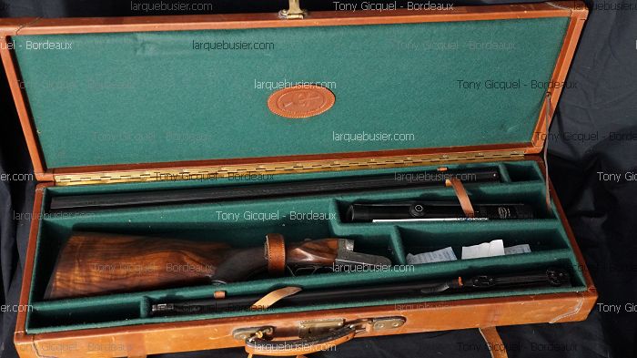 CHAPUIS RGEX CAL 20/70 + CAL 8X57 JRS + LUNETTE EN MALLETTE CUIR, canon lisse L 70 cm cal 20/70, choke 1/4 et 3/4 + canon L 60cm cal 8×57 JRS + lunette SCHMIDT AND BENDER 11/4-4*20. crosse pistolet L 370mm avec plaque bois, double détente, éjecteurs – Bascule gravée avec cerf et sanglier signée « FREYCON MOF » – L’ensemble en valise cuir- Très bon état général.