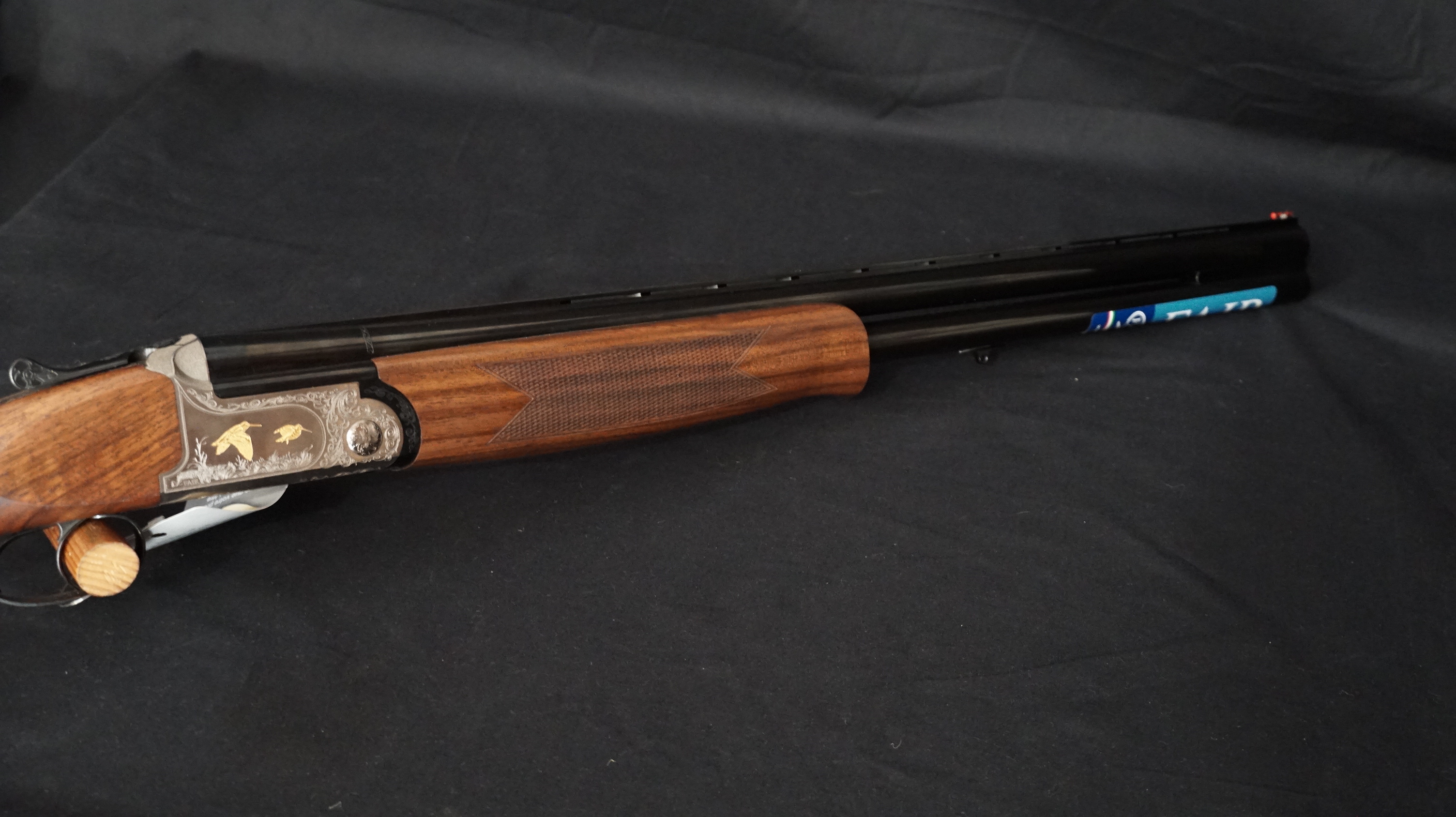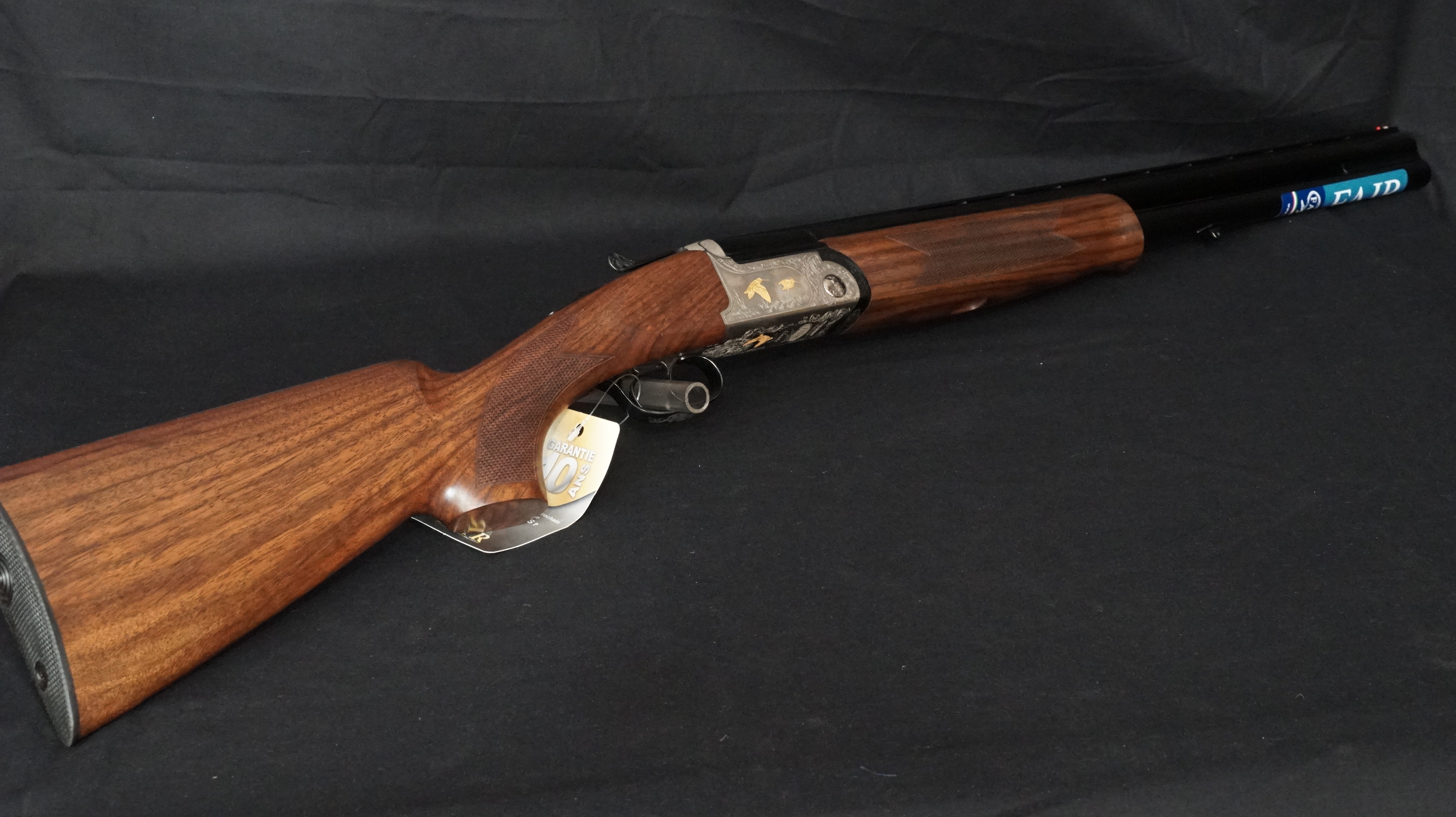 Fusil superposé bécassier, léger et maniable, idéal pour le petit gibier en milieu boisé.