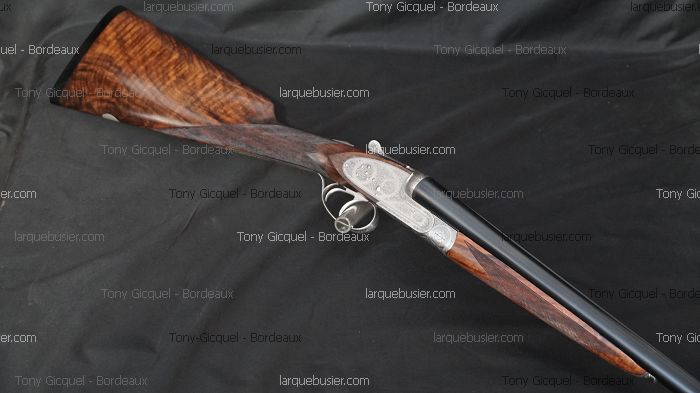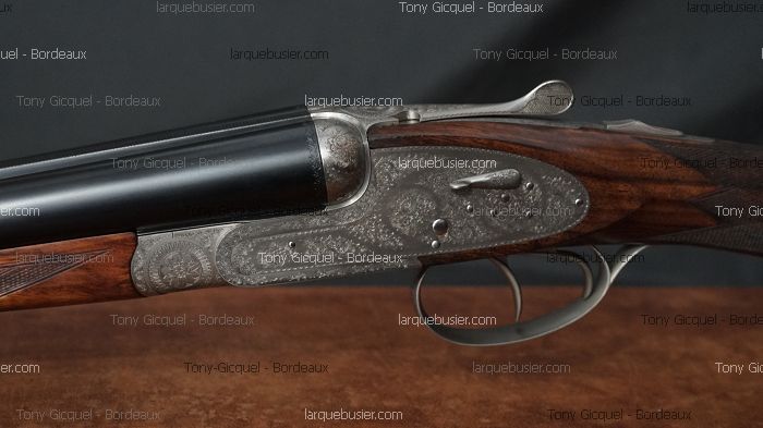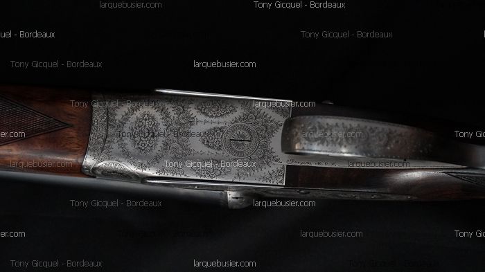 G. GRANGER PLATINES CALIBRE 20/70 GRAVURE FREYCON, fermeture aiglon, double détente, ejecteurs, canons 69.5cm, chokes 1/4 et 1/2, ame 16, crosse anglaise L 375mm avec plaque ébène de 15mm, gravures fines anglaises signées « FREYCON MOF », poids 2.739 kg