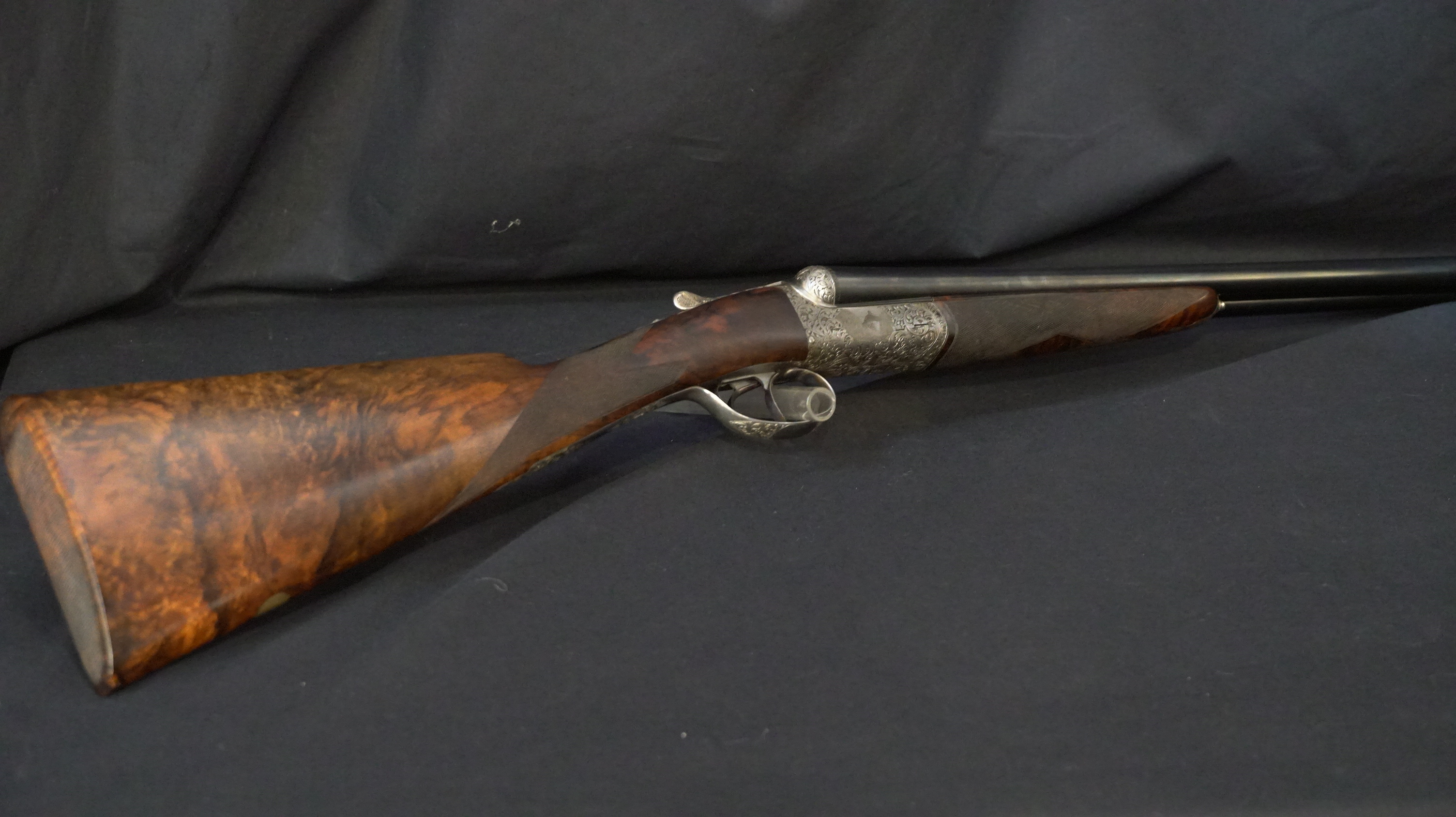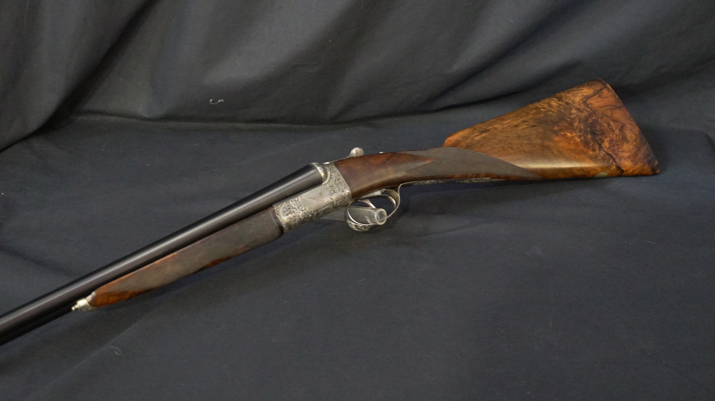 GICQUEL modéle RONDO cal 20/76, bascule ronde, canons 70cm, éprouvé bille acier, chokes interchangeables (5 +clé), crosse anglaise L 380mm tout bois, gravure fond creux signée Da Justa, poids 2.840 kg, très bel état, en valise cuir.