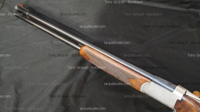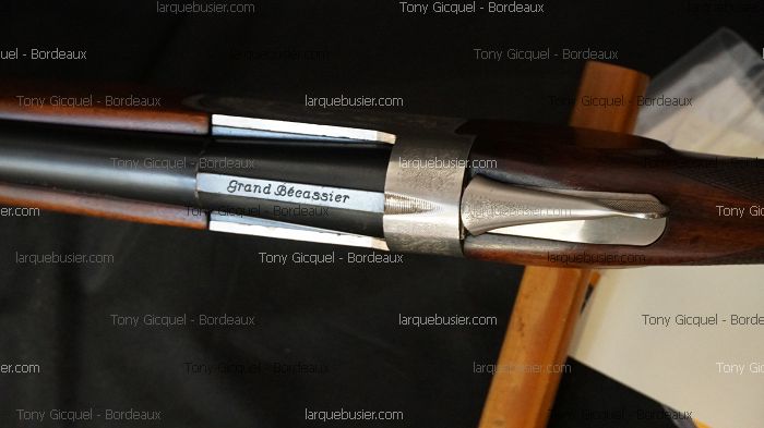 VERNEY CARRON GRAND BECASSIER CAL 12/70, double détente, ejecteurs, canons 61cm rayé en bas et mobilchoke (1/2), crosse pistolet L 370mm d’origine. Poids 2.4 kg.